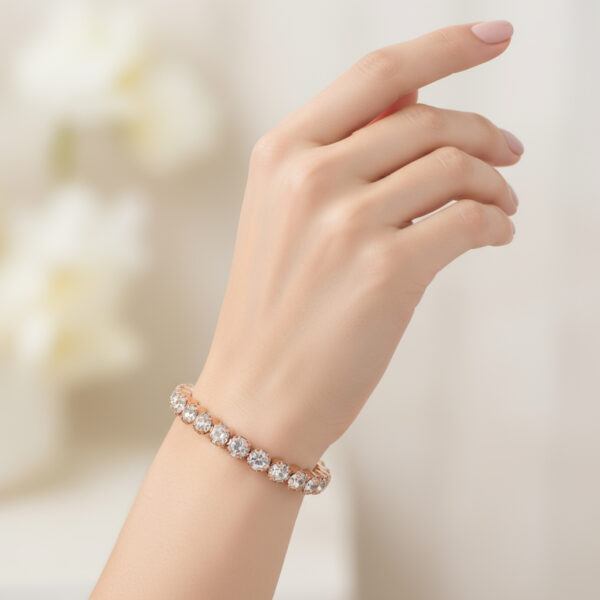 Glow every day with Ijewelora’s RoseGold plated crystal tennis bracelet—AAA+ CZ sparkle, skin‑friendly and adjustable. Perfect for weddings, parties, office and gifting.